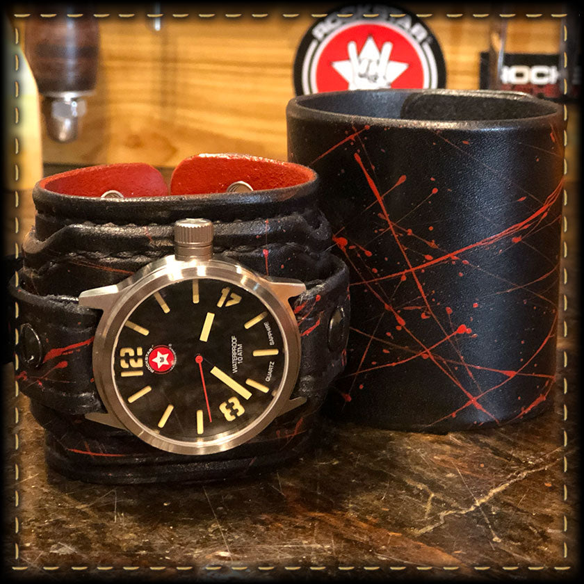 Thank you for viewing my products. All leather cuff watches, leather cuffs, leather wristbands, leather bracelets & leather bags are handmade from hand selected leather. I offer a wide variety of wide band leather cuff watches, watch bands & cuff wristbands, in a number of custom colors & combinations. I take great satisfaction in hand crafting each & every item. Each product is hand-tooled, dyed & conditioned with care, to ensure a high quality end product for you. All are individually made to size, so please measure your wrist correctly.