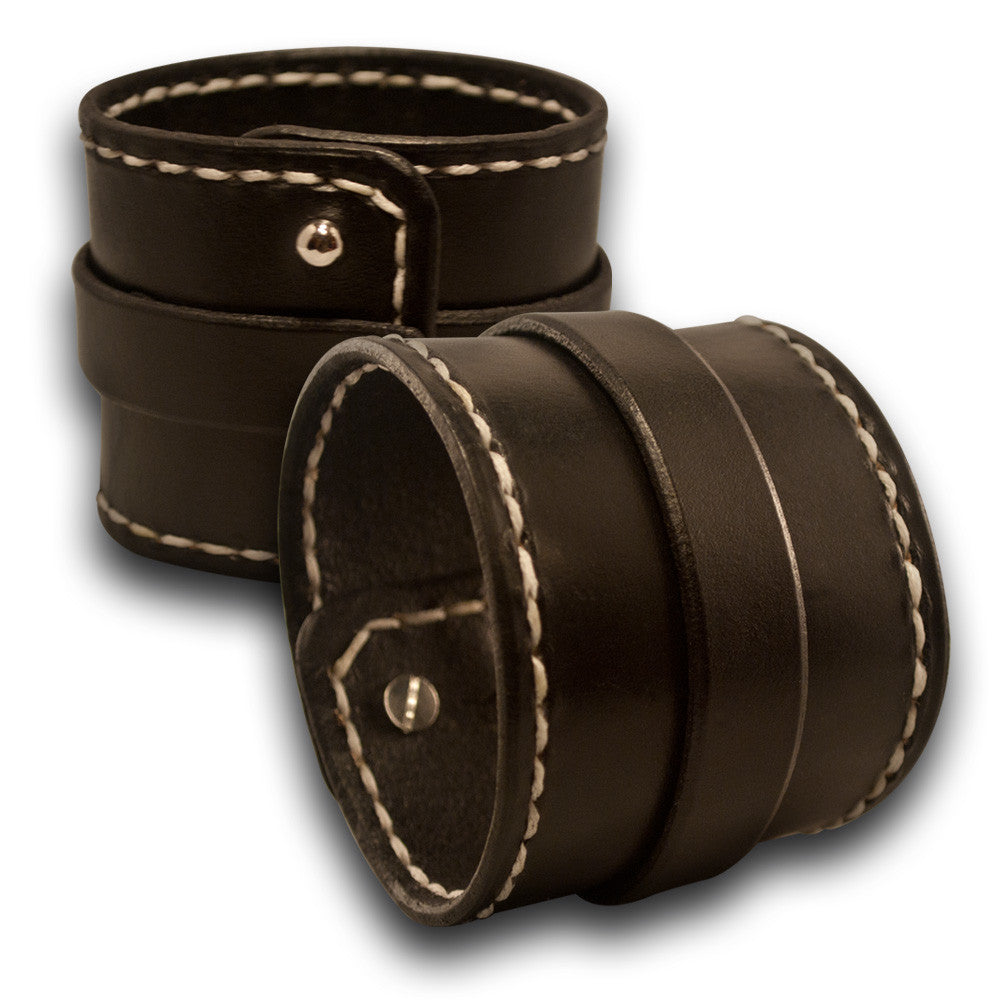 2.25" Cuff / Silver Cuff / Slate Stressed Straps / Black Underside / Double Black Stitching with Tooling / Celtic Snaps / Stainless Eyelets / Black Adapters / Fits All Series Apple Watches