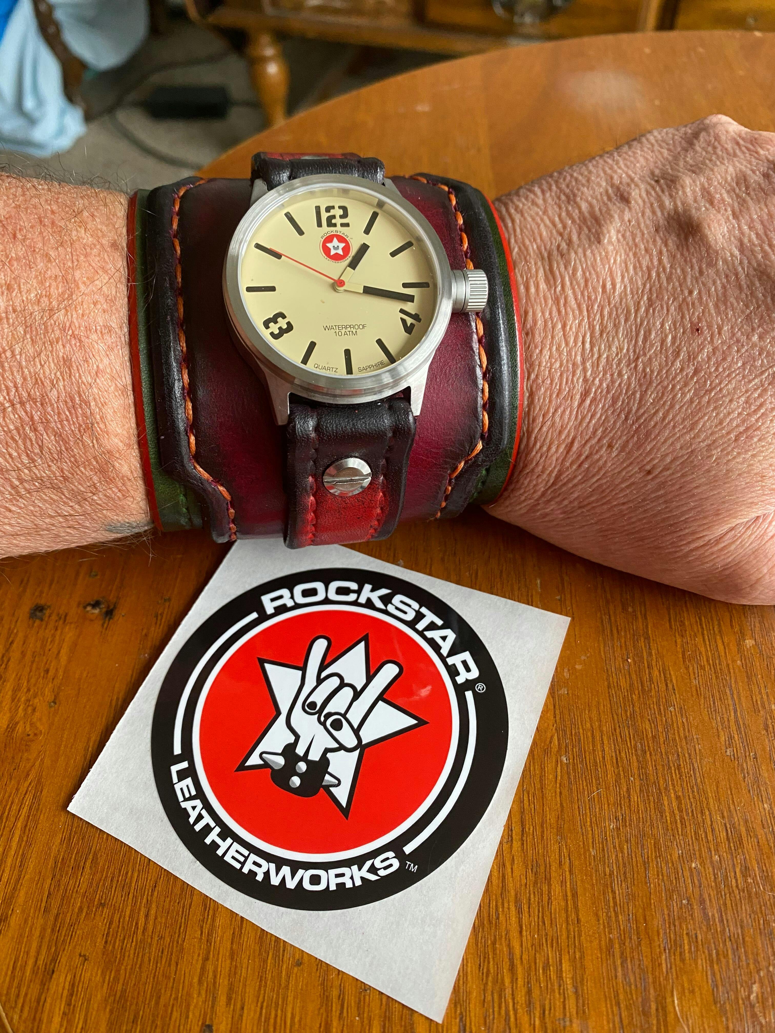 In short… I’m on my second piece because the first wasn’t enough. I’m a big watch fan and have different watch’s for different activities but whether I want to work or play these custom Rockstar Leatherworks cuffs are incredible! Individually crafted with top notch materials they are head turners. Sure you can find leather cuffs cheaply made in China on Amazon for a fraction of the price but they don’t hold up overtime, I’ve been there done that. You get what you pay for and Lee and the Team at Rockstar Leather work provide spectacular pieces that will compliment any time piece and you get every penny’s worth of the money you spend. Made in America by American workers these quality cuffs will last a lifetime. On my recent order Lee and the team took time to review my measurements and custom craft a piece for my Garmin Tactix Pro like no other. The customer service is amazing and they treat you like family. The pieces I have can and will be passed down to my son.